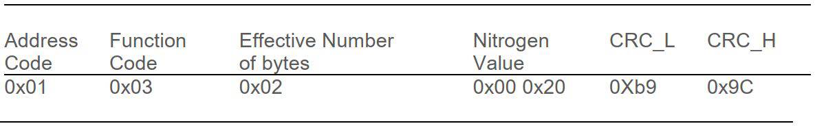 받은 응답에서 토양 질소를 계산할 수 있습니다. 예를 들어, 응답으로 0030을 얻은 경우 토양 질소 값은 다음과 같습니다.