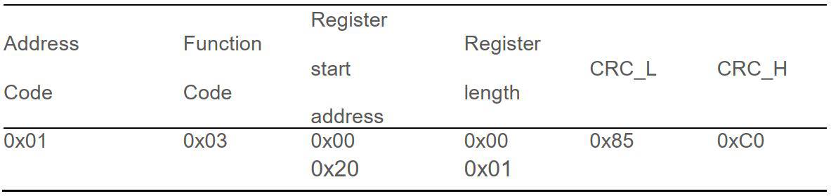 2. 인: {0x01,0x03, 0x00, 0x1f, 0x00, 0x01, 0xb5, 0xcc}