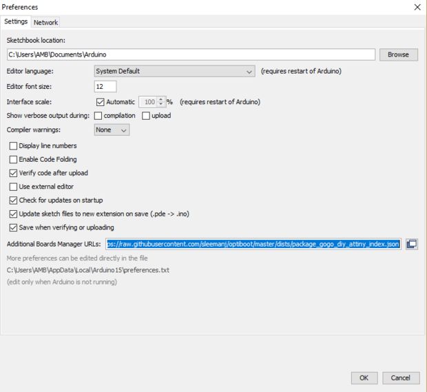 이제 Arduino는 ATtiny 13을 프로그래밍할 준비가 되었지만, 여전히 핵심 파일을 설치하여 ATtiny를 설정해야 합니다. 이 튜토리얼에서는 sleepmanj 의 파일이 가장 좋습니다.