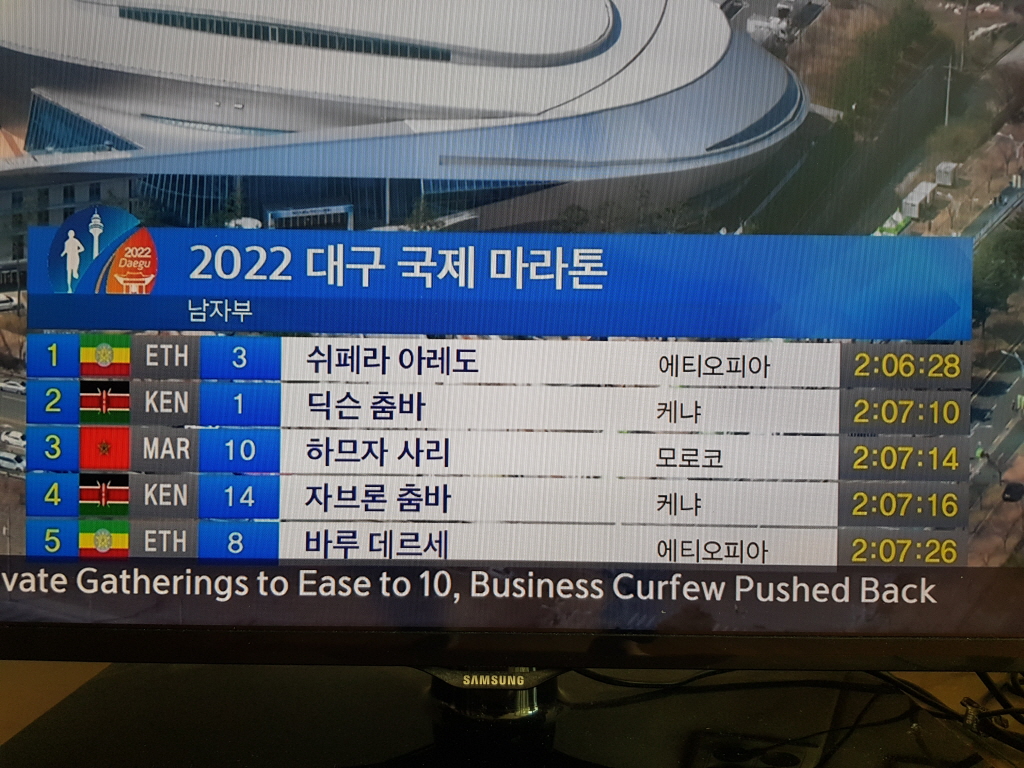 아침 8시에 시작된 마라톤 대회를 티브이로 보고 있는데 엄마가 말씀하신다.