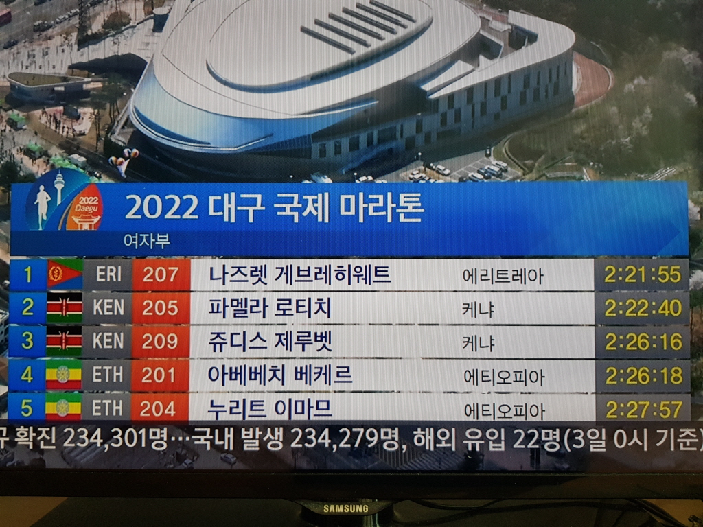 대구시와 대한 육상연맹 주최, 대구시체육회와 대구육상연맹 주관으로 열린 2022 대구 국제마라톤대회 대면 엘리트 경기에는 총 10개국 155명의 정상급 남녀 선수들이 참가했다.
