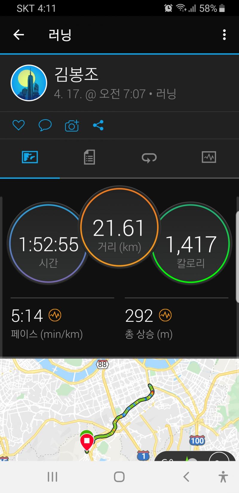 좀 일찍 나와서 함께 달렸으면 1시간 45분 기록도 가능했을 텐데 혼자 달렸더니 기록은 좋아 보이지 않지만 끝까지 잘 달렸다. 기록 인증을 위해 런 아카이브에 기록을 올리고 승인을 받았다.