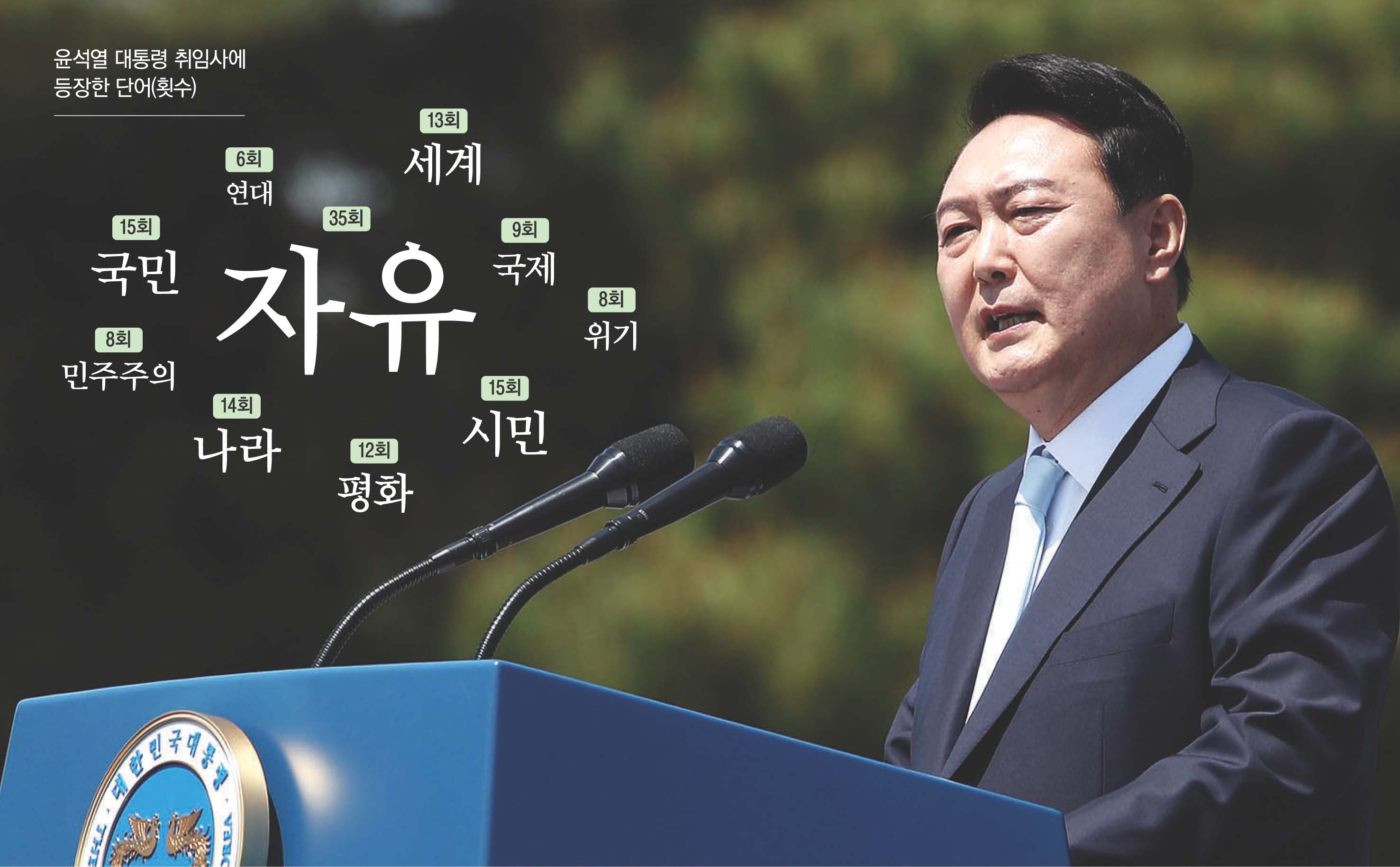 저는 자유, 인권, 공정, 연대의 가치를 기반으로 국민이 진정한 주인인 나라, 국제사회에서 책임을 다하고 존경받는 나라를 위대한 국민 여러분과 함께 반드시 만들어 나가겠습니다.