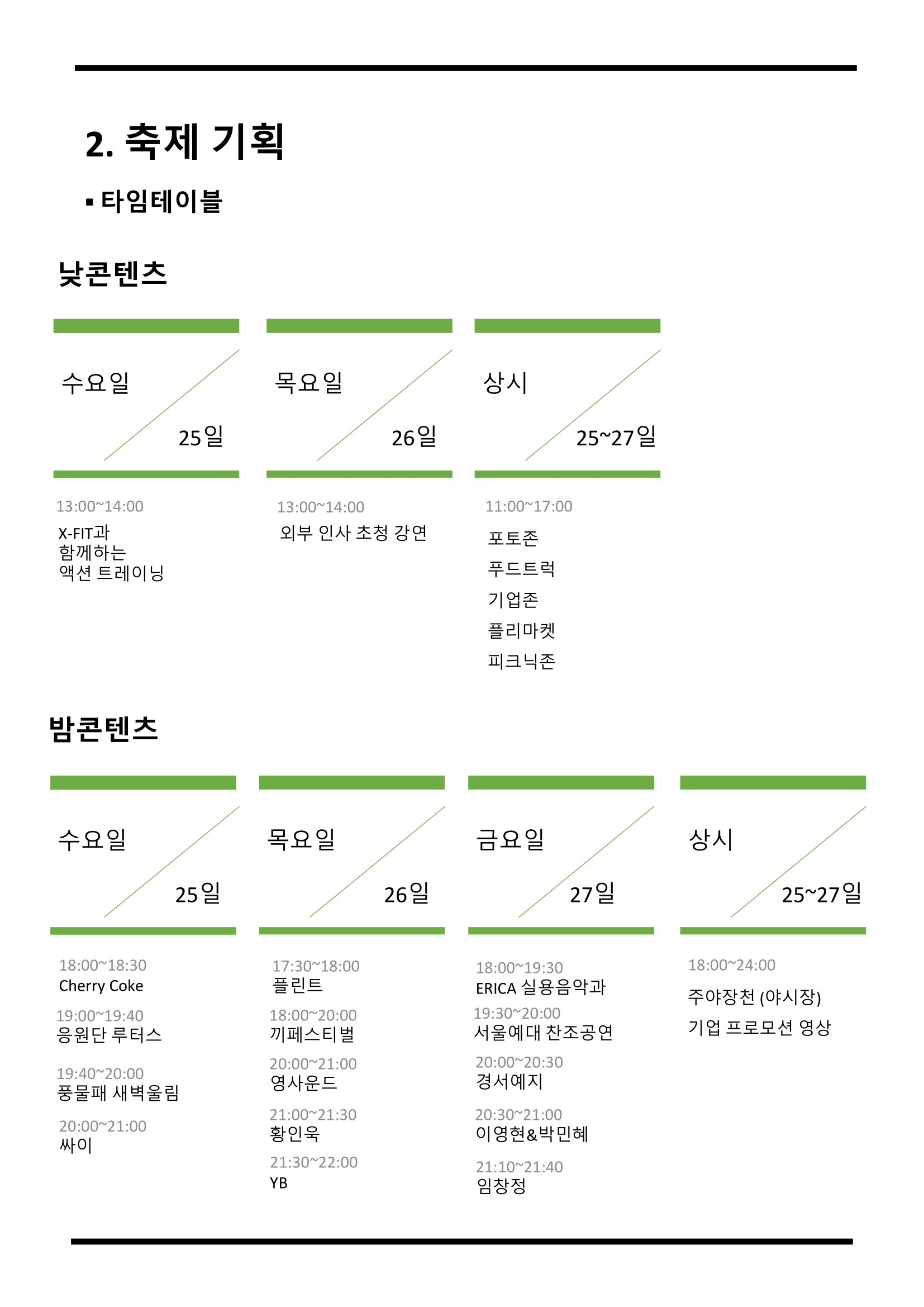 학교는 25~28일 봄 축체를 진행한다. 한낮의 햇살이 좀 뜨겁지만 초록과 녹색으로 물든 캠퍼스에서 어떤 행사를 하든지 정말 가장 좋은 날씨다. 곳곳에 천막을 치고 모든 단과대학, 전공 과학생회와 동아리에게 주점을 만들어 준다. 특별한 곳에는 멋진 부스와 작은 공연장을 설치한다. 학생회관 뒤 호숫가 물을 일찍 빼고 파란 깔개를 바닥에 깐다. 연예인 공연과 응원단, 노래와 율동이 벌어지는 곳이다. 매표소도 운영한다. 외부인도 출입이 허용된다. 행사 스태프로 보이는 아이들은 예쁜 옷을 입고, 머리를 질끈 묶어 포니테일을 만들고, 아침 일찍부터 땀을 흘리며 천막을 꾸미고, 현수막을 달고, 집기와 인터넷을 확인하고, 전기를 끌어오고, 함께 할 인원을 점검하고, 여러 가지 소품을 나르느라 바쁘기만 하다.