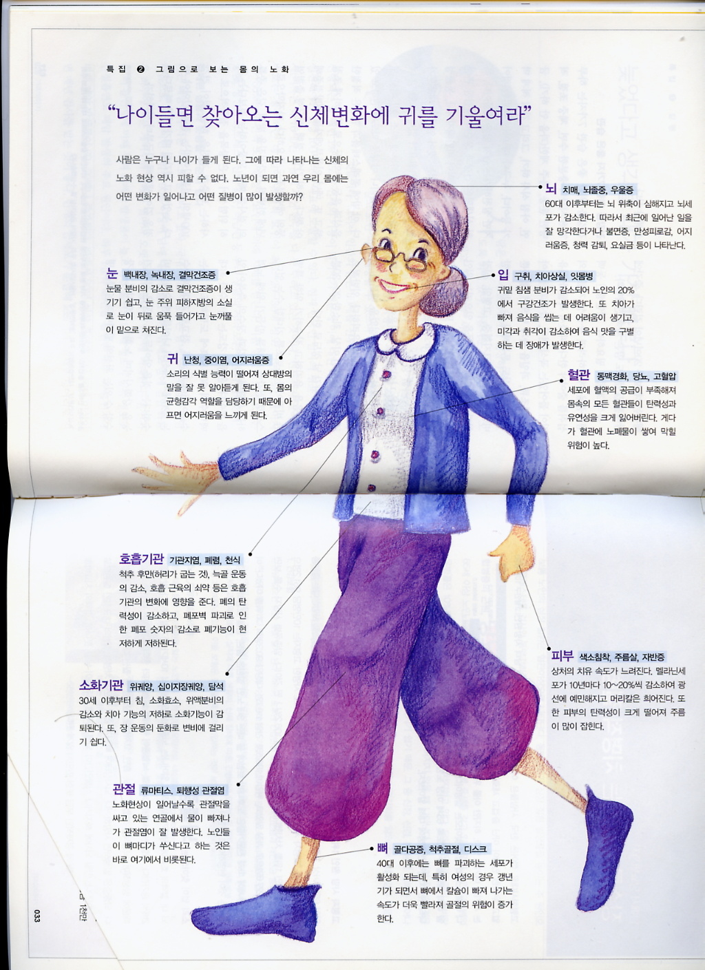 이 책은 무엇보다 '노화의 정체'를 아는 것이 중요하다고 말한다. 노화의 정체를 알면 고령자가 난처한 행동을 해도 조바심 내지 않고 침착하게 대응할 수 있다. 젊은 사람에게는 낯설고 이해하기 어려운 내용들을 한마디로 말하면 '노인 취급 설명서'다. 안과 의사인 저자는 고령자를 10만 명 넘게 상대하고 의학 서적을 뒤져 알게 된 많은 사실을 알려준다. 고령자의 인지 문제뿐만 아니라 눈, 귀, 코, 잎, 팔, 다리, 비뇨기 등 많은 부위의 노화 실태를 정말 이런가 싶을 정도로 세세하게 설명해준다. 마치 나의 앞날을 보는 듯해서 두근두근 심장이 떨린 적도 있다.