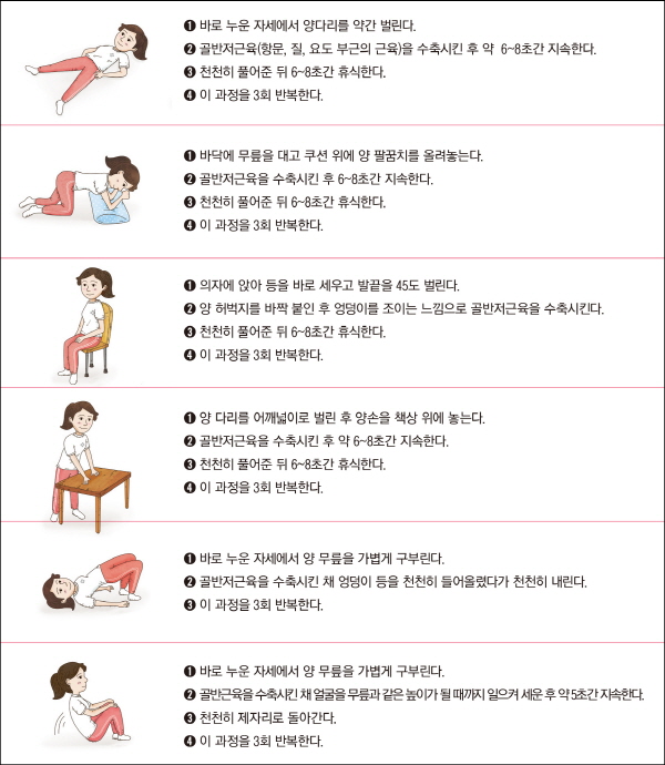 고령자는 외출을 싫어하는 데 주된 이유는 화장실을 자주 가야 하기 때문이다. 한 시간 이상 참지 못한다. 화장실에 자주 가면 습관이 된다. 아주 급하지 않으면 참도록 훈련하는 편이 좋다. 소변을 참으려면 골반저근 운동(케켈 운동)으로 근육을 강화해야 한다. 잠들기 전 6시간 이내에는 카페인 섭취를 하지 않는다.