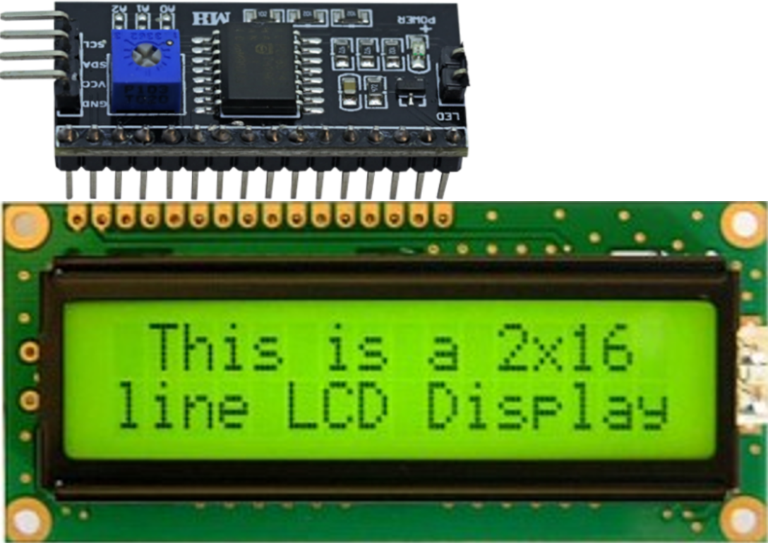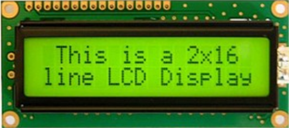 LCD는 Liquid Crystal Display의 약자로 액정표시장치를 말한다. Liquid Crystal이란 액체처럼 유체의 성질을 가지면서 고체처럼 광학적 성질을 가지는 물질로써 액정은 고체표면에 액정이 특정 방향으로 정렬할 수도 있어, 전기적 신호를 가해 원하는 방향으로 배열하여 빛을 투과시키거나 차단시킬 수 있다. 아래는 2줄 16 문자를 표시할 수 있는 LCD를 보여준다.