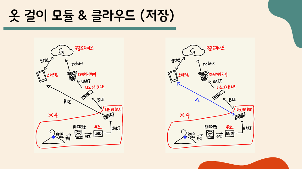 클라우드를 라즈베리파이에 마운트해서 쓰는 것, BLE라는 최신 기술의 블루투스로 통신하는 것 여러 과정의 통신을 엮어서 쓰는 것 모두 어려웠지만 가장 어려웠던 것은 BLE 관련 코드를 짜는 것이었습니다. 나온 지 오래된 기술도 아닐뿐더러 NANO 33 BLE 보드도 출시한 지 몇 년 안 된 보드이다 보니 참고할만한 자료가 많이 없었습니다. 그래서 개척자의 마음으로 많은 것들을 직접 처음부터 짜는 수밖에 없었습니다. 많은 것을 배웠지만 이 때문에 완성을 못 시킨 것 같아 아쉽습니다. 기회가 된다면 같은 아이디어로 임베디드 소프트웨어 경진대회를 참가해보고 싶습니다.