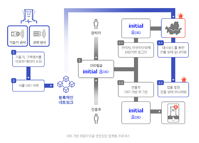 사물인터넷(IoT)의 확산과 함께 보안 문제가 핵심 이슈로 떠오르고 있는 가운데 SK텔레콤이 국내 최초로 블록체인과 IoT 기술을 융합한 DID(분산 신원확인) 서비스를 시작했다. SKT는 시티랩스, 씽크제너레이터, 지노시스, 방재시험연구원으로 구성된 시티랩스 컨소시엄의 블록체인 기반 위험 구조물 안전진단 플랫폼 사업에 자사의 블록체인 기반 모바일 전자증명 서비스인 ‘이니셜’을 지원한다. SKT는 다양한 민관 협력 사업을 통해 이니셜의 생태계를 확장해 나가고 있다. 현재 행정안전부 전자문서 지갑을 통해 전자증명서 30종을 발급할 수 있고, 100종의 공공 증명서를 보관하는 등 정부 기관과의 제휴 범위를 확대하고 있다. 또한 대학 제증명 발급·제출, 고려대 모바일 학생증 발급, SKT 고객센터 서류 제출 등 다양한 제휴처로 적용 범위를 확대하고 있다.