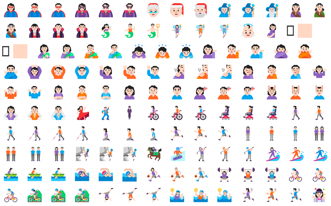 이모티콘은 iOS, 안드로이드, 맥OS, 윈도우, 리눅스, 크롬 OS에서 지원된다. 트위터, 페이스북, 슬랙, 인스타그램, 스냅챗, 슬랙, 깃허브, 인스타그램, 왓츠앱 등의 이모티콘을 복사하여 붙여 넣습니다.