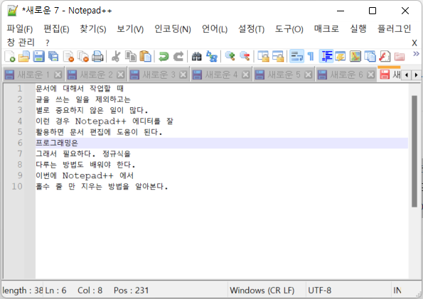 문서에 대해서 작업할 때 글을 쓰는 일을 제외하고는 별로 중요하지 않은 일이 많다. 이런 경우 Notepad++ 에디터를 잘 활용하면 문서 편집에 도움이 된다. 프로그래밍은 그래서 필요하다. 정규식을 다루는 방법도 배워야 한다. 이번에 Notepad++ 에디터를 사용할 때 문서에서 홀수 줄 만 지우는 방법을 알아본다.(notepad++ 에디터 다운로드)