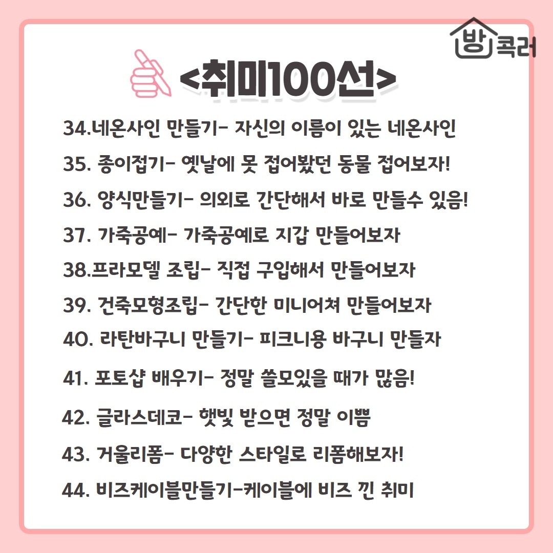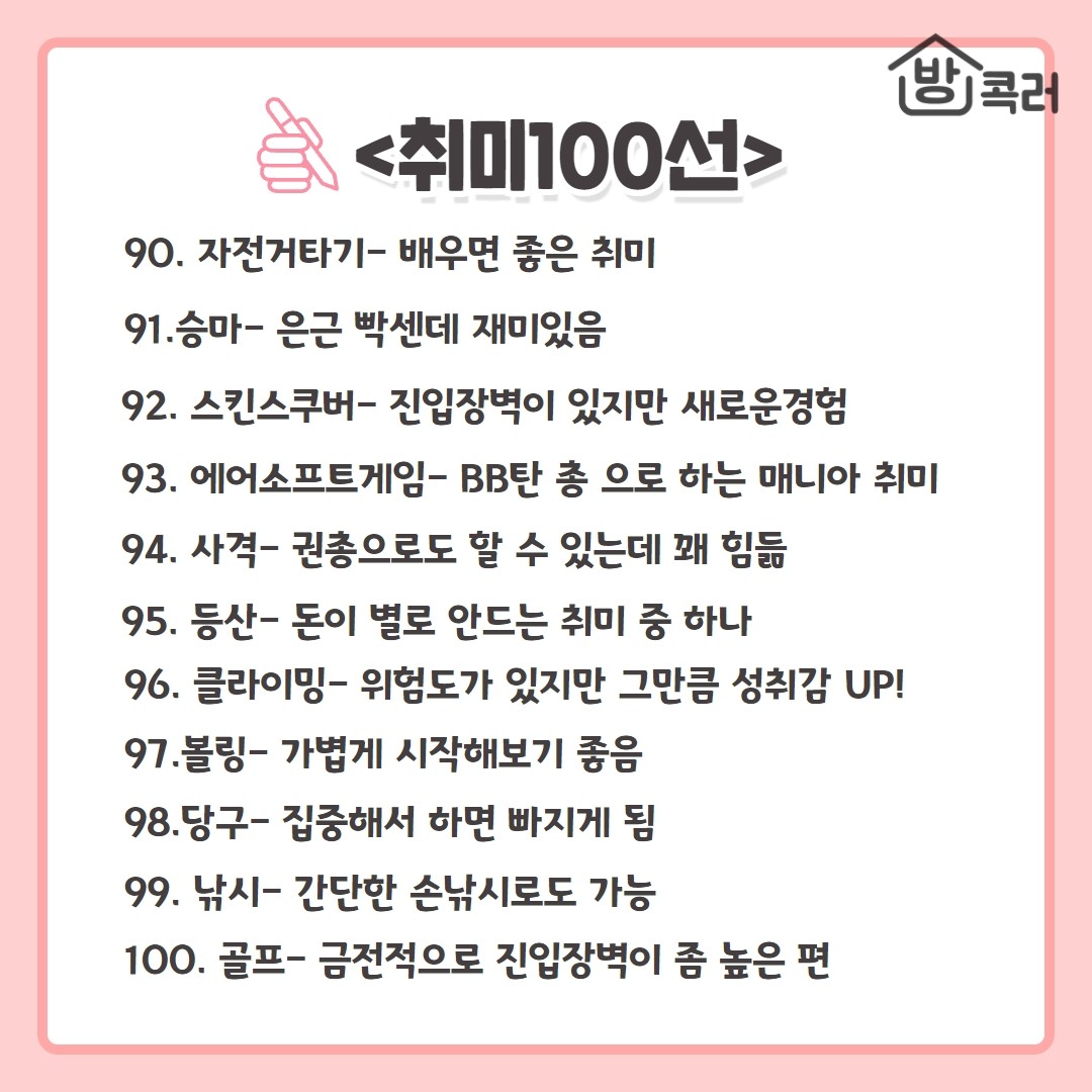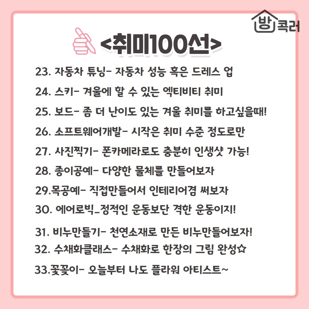 삶이 무료할 때 시작하기 좋은 취미 100선 모음