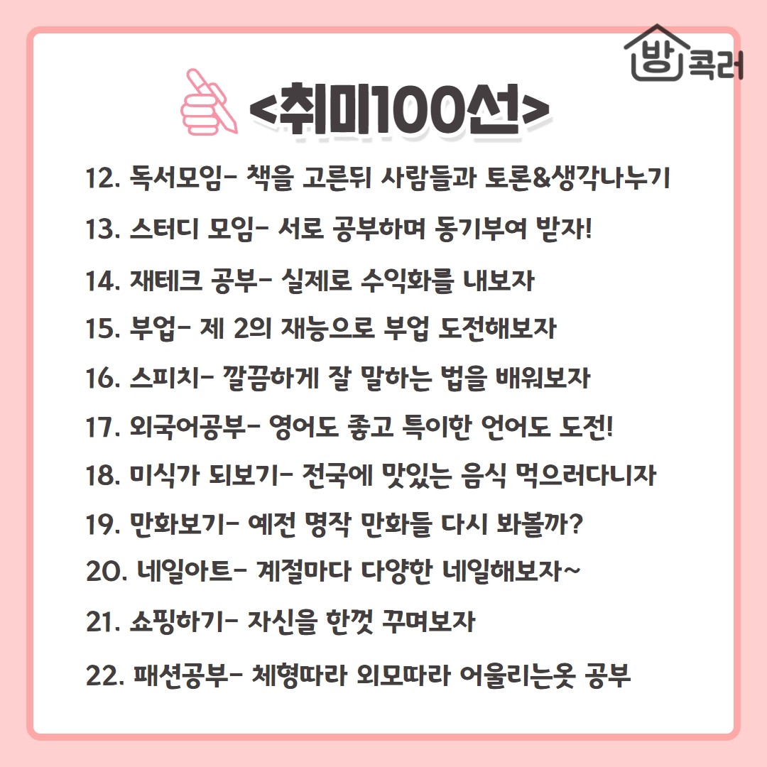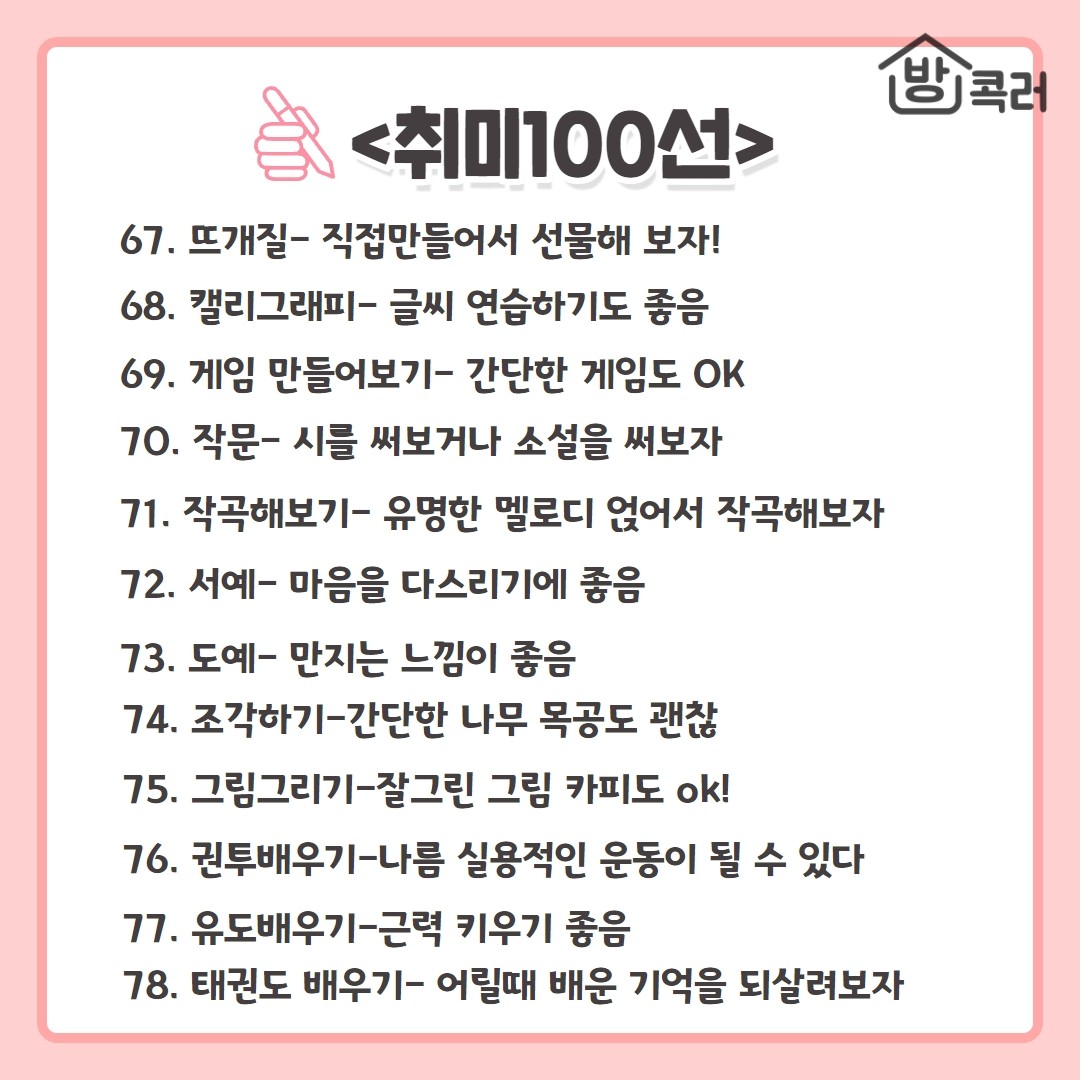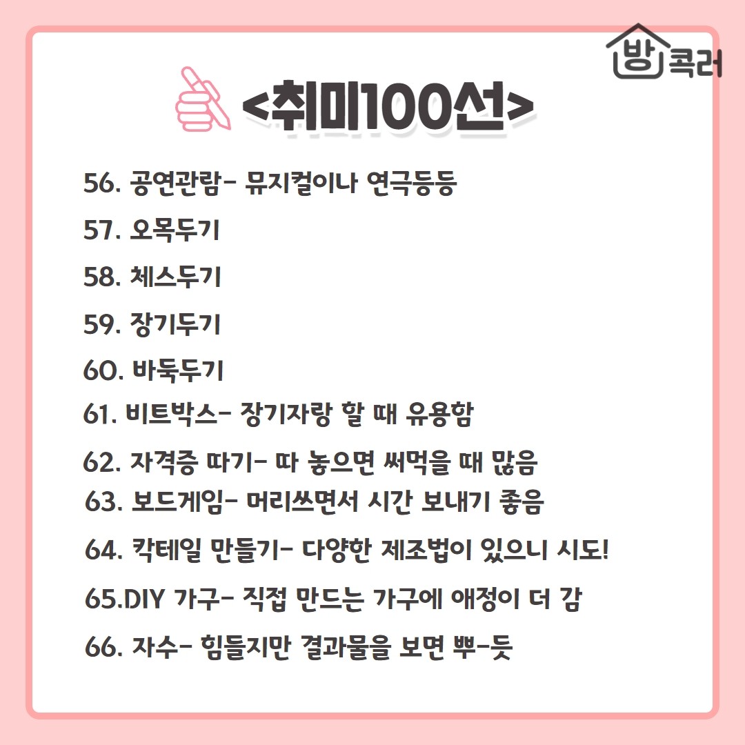 삶이 무료할 때 시작하기 좋은 취미 100선 모음