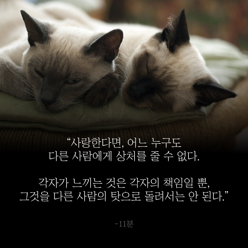 사랑한다면, 아무도 다른 사람에게 상처를 줄 수 없다. 우리는 각자 자신의 감정에 책임이 있고, 우리가 느끼는 감정에 대해 다른 사람을 비난할 수 없다.