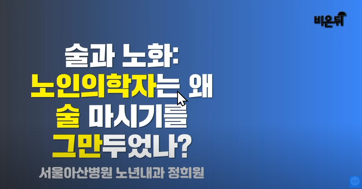 술과 가속노화에 대한 더 많은 정보는 <당신도 느리게 나이들 수 있습니다> 와 다음 Youtube 영상에서 다루니 참고하시라.