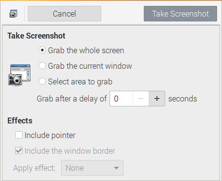 그놈 스크린샷을 실행하려면 Raspberry Pi 메뉴로 이동하여 액세서리를 클릭하고 스크린샷을 실행하십시오.