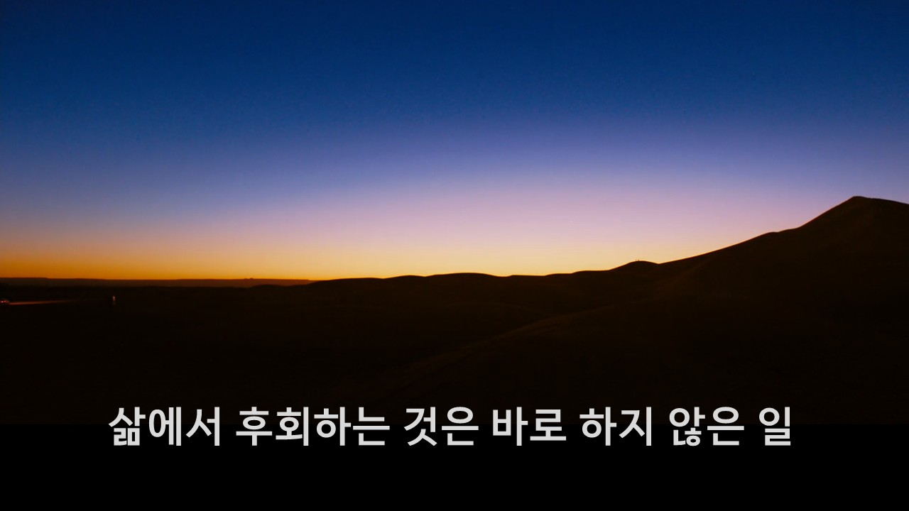 충분히 나이 듦을 잘 누리는 여러 사람에게 물었다. 사전에 계획한 것도 아니고 질문지도 없이 지나가는 나이 든 어른에게 질문한 것이다. 대답의 공통점은 무엇이든 해 보란 것이다. 주저하지 말고 하라는 말이다. 그들도 제일 후회하는 것은 역시 하지 않은 일이다.
