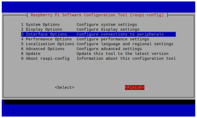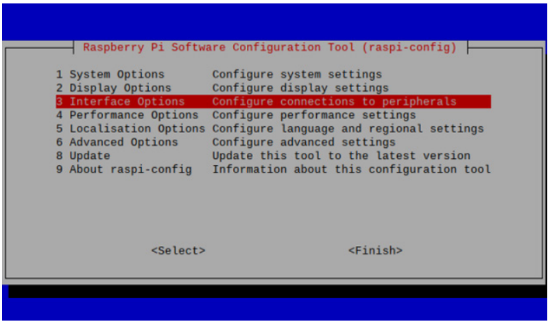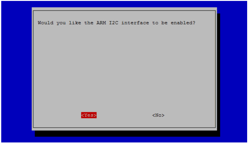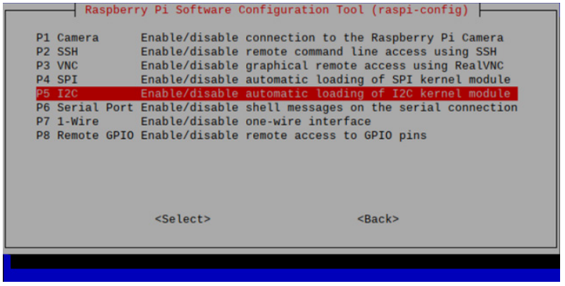 다음은 $ sudo raspi-config 명령어를 사용하여 라즈베리파이 보드의 I2C 인터페이스를 사용가능하도록 활성화(인에이블) 해야 한다. 아래 이미지를 참고하여 설정한다. 이미 설정도어 있다면 가볍게 넘어간다.