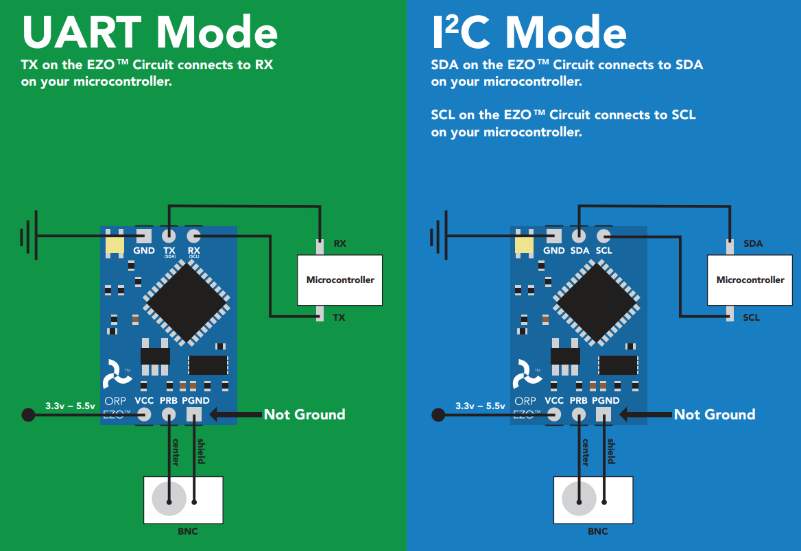 여기서는 실제 센서 회로보드를 연결하고 데이터를 수집하는 과정을 보여준다. 어렵지 않으므로 쉽게 따라 할 수 있다. 아래는 ORP 센서를 마이크로 컨트롤러와 연결할 때 참고한다. 센서 인터페이스를 UART와 I2C 모드를 변경할 때 참고할 링크는맨 아래 참고 링크를 보기 바란다.