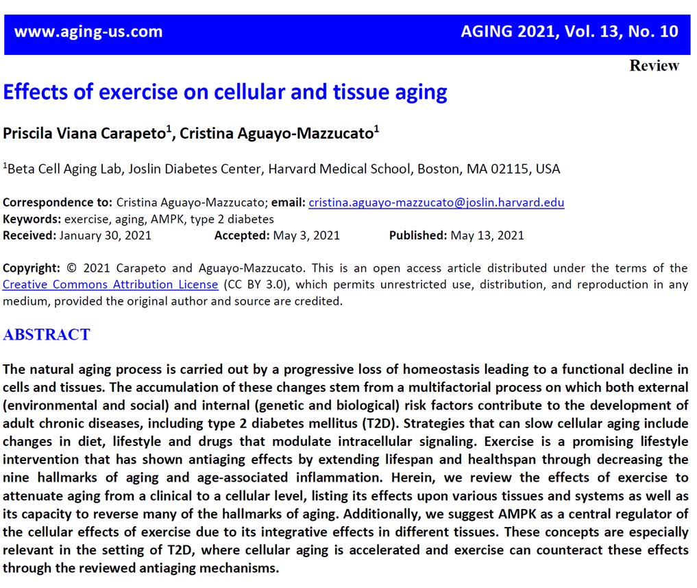 미시적인 관점에서, 운동은 미토콘드리아 생성, 세포 노화, 줄기세포 고갈, 세포 간 통신 변화를 비롯한 노화의 주요 특징