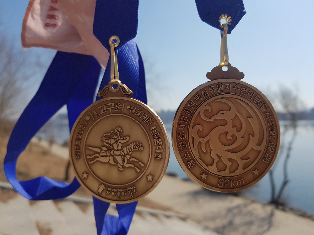 마라톤 대회 완주 메달이 화려하고 예뻤으면 좋겠다.