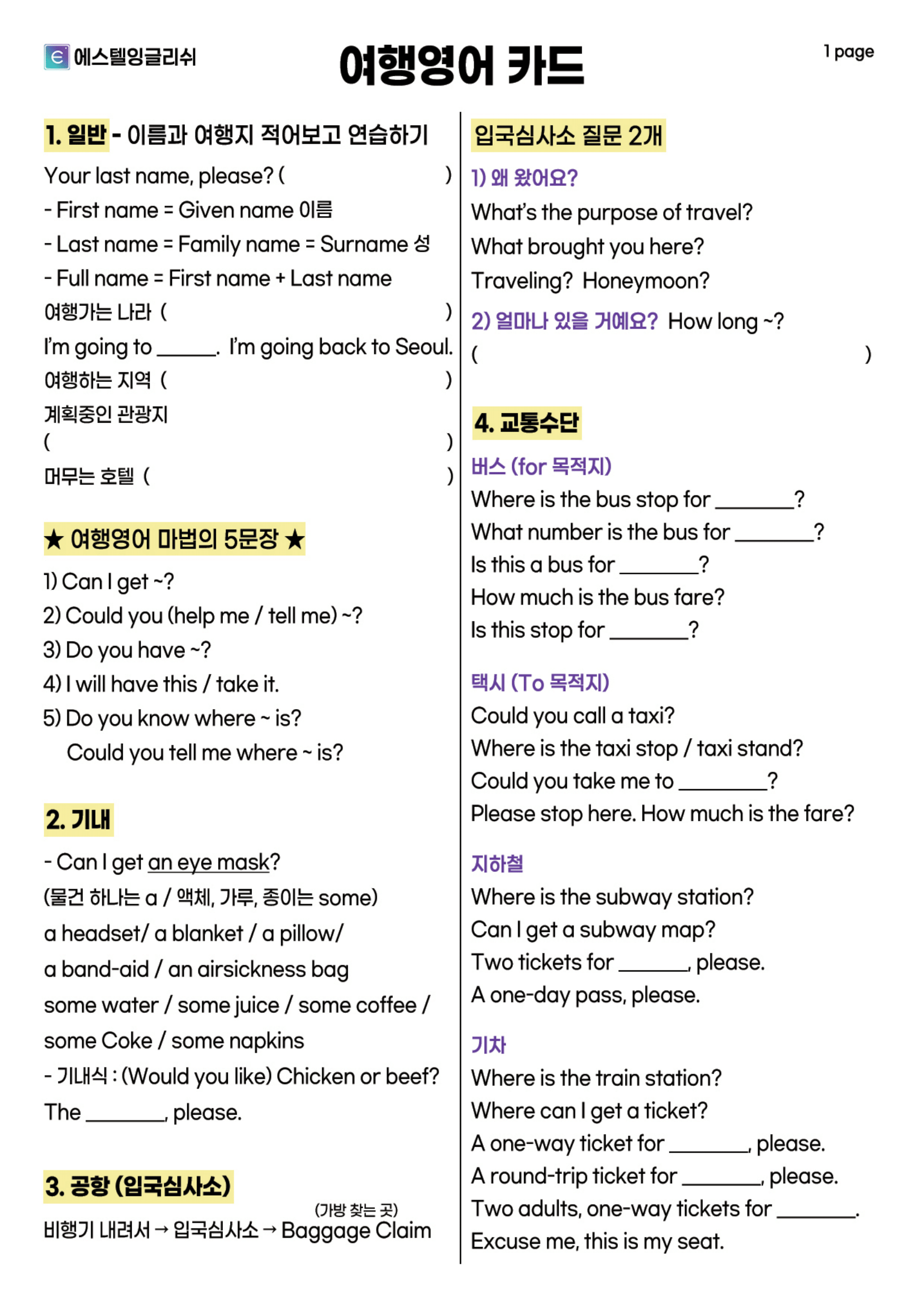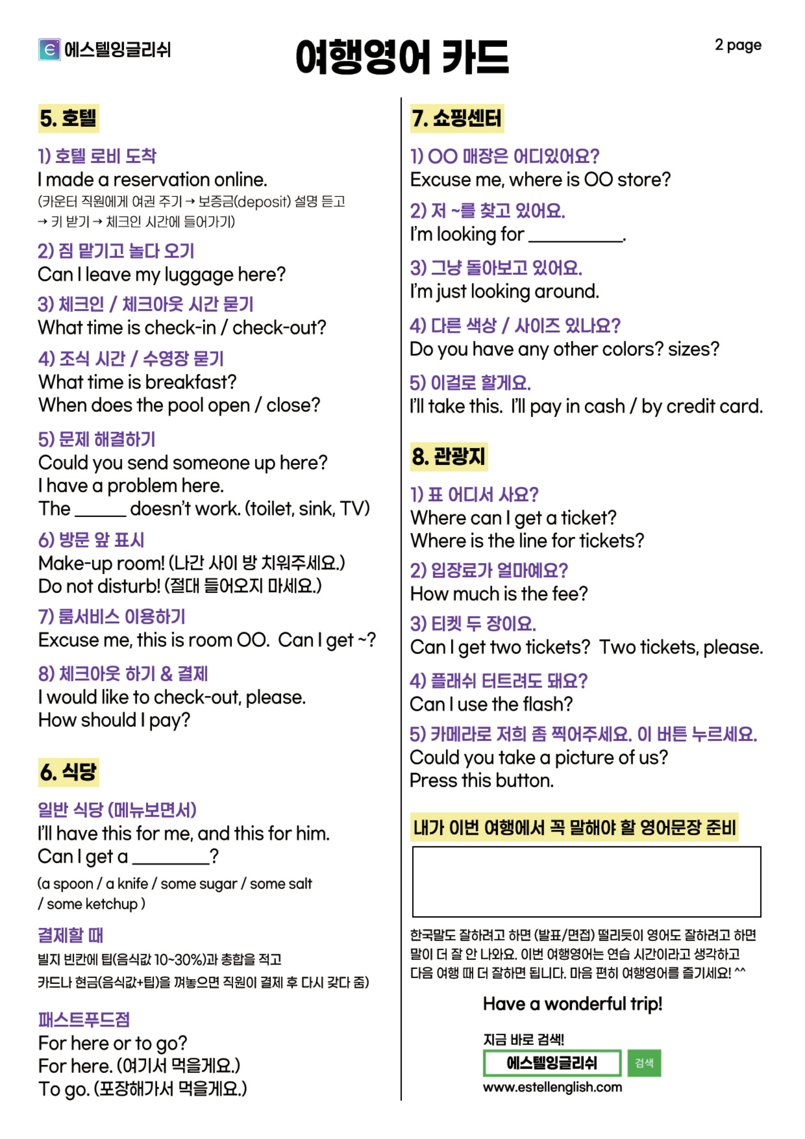 에스텔 잉글리시 강의 자료. 유튜브로 공부하다가 다운로드하였다. 통째로 외운다.