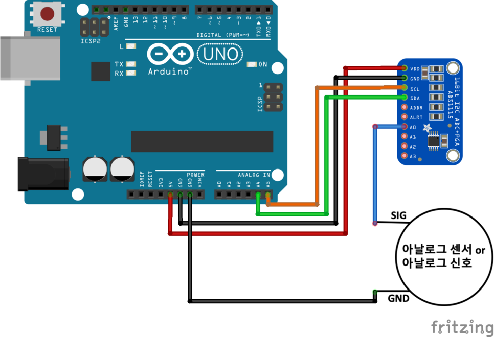 - ads1115 해상도(분해능) : 16bit (0~65535)