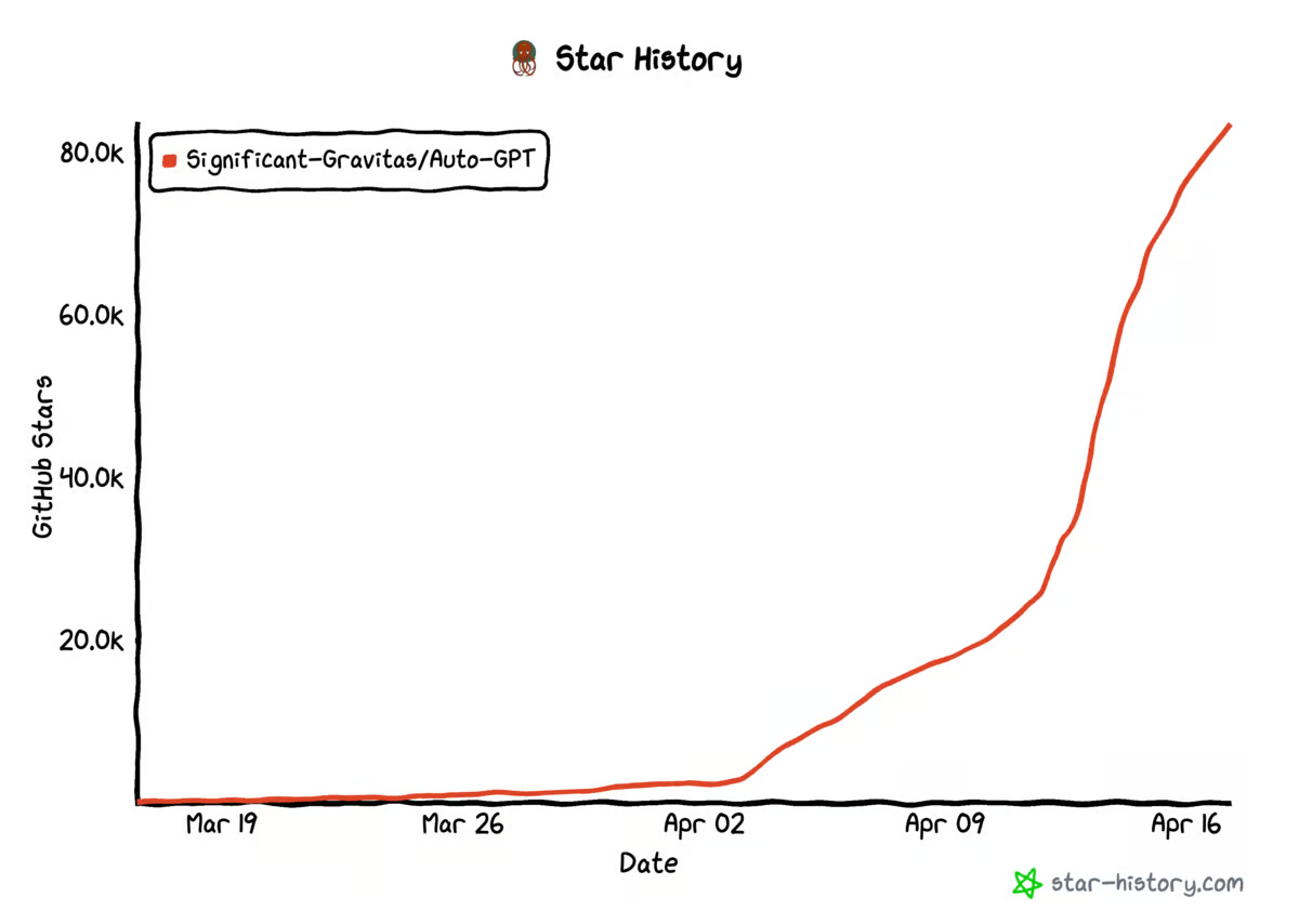 오픈 소스 자율 에이전트 코드 베이스가 만들어진 지 2주 만에 거의 10만 명의 개발자가 자율 에이전트를 구축하고, 개선하고, 한계까지 밀어붙이고 있으며, 이는 이러한 개념이 발명된 지 불과 몇 주 만에 이루어진 일입니다. 이 기술을 사용하는 개발자의 수는 점점 더 빠른 속도로 증가하고 있습니다.