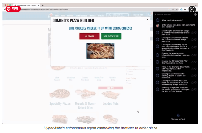 HyperWrite에서 방금 출시한 이 자율 에이전트를 확인해보세요. 브라우저에서 살아 움직이며 피자 주문을 도와주는 것을 볼 수 있습니다. "도미노스의 라지 플레인 피자를 원 밴더빌트에 주문해줘"라고 말하기만 하면 바로 주문이 완료됩니다.