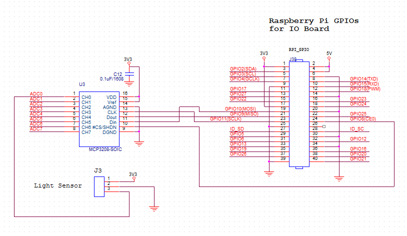 라즈베리파이는 범용적인 목적으로 입/출력을 담당하는 GPIO (General Purpose Input / Output)를 가지고 있으며, SPI 통신, I2C 통신, UART 통신을 가지고 있지만, 아쉽게도 ADC 기능이 없어서 센서를 활용하지 못하는 단점이 있다. 그래서, ADC 칩인 MCP3208을 이용하여 외부 ADC 기능을 가지도록 하자. 이를 위해서는 라즈베리파이와 MCP3208간에 SPI 통신을 이용하여 ADC 데이터를 받아와야 한다.