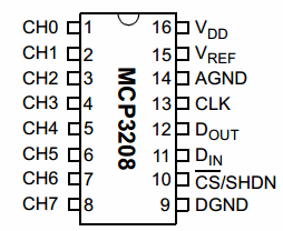 MCP3208 은 8-Channel 12-Bit A/D Converter이다. 즉, 센서의 출력값인 아날로그 값을 12비트의 디지털값으로 변환하는 ADC 칩이다. 예를 들어 0v ~ 3.3v의 센서 출력값을 0 ~ 4095 (12bit)의 디지털값으로 변환해 주는 기능을 해준다.