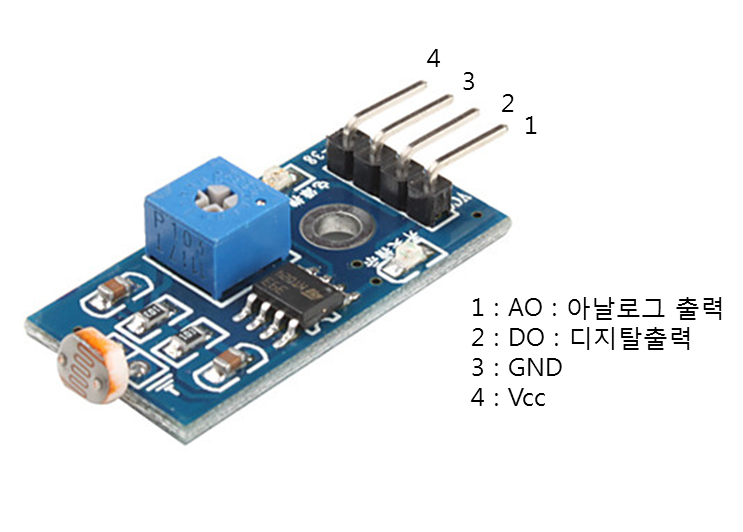 이번 포스팅에서 테스트할 조도센서는 모델 6495 조도센서이다. 조도센서의 출력은 두 가지를 이용할 수 있는데 일정 밝기 이상에서 하이가 출력되는 디지털 출력과 빛의 양에 따라 값이 아날로그로 변환되어 출력하는 아날로그 출력을 동시에 가지고 있다. 여기에서는 아날로그 출력을 확인해 보도록 한다.