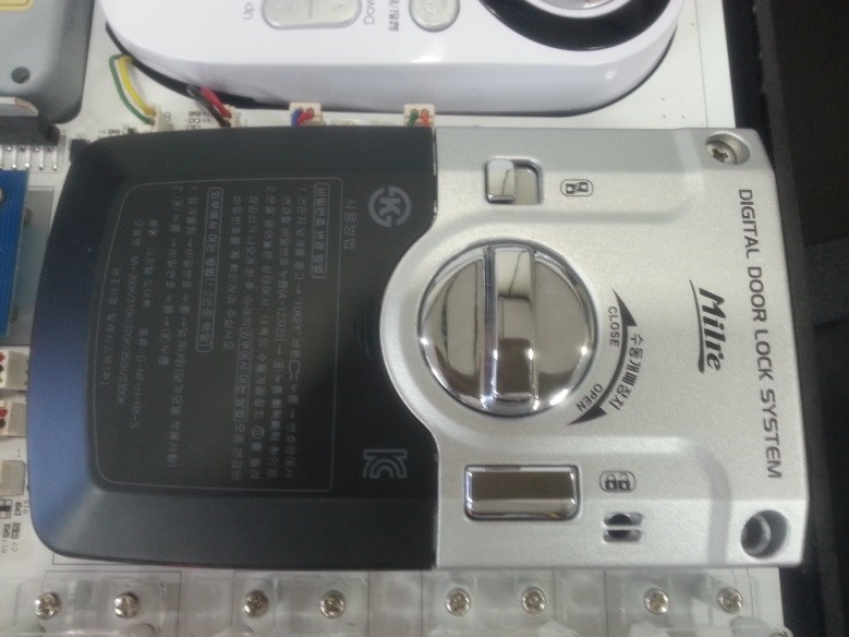 위와 같이 디지털 도어록은 많은 편리함을 주고 요즈음은 인터넷에 연결된 도어록을 흔히 볼 수 있게 되었다. 여기서는 도어록의 개폐를 실습하고, 인터넷과 연결되어 동작하는 도어록으로 사용하는 방법을 후에 실습할 것이다. 아래 디지털 도어록의 외형을 나타내었다.