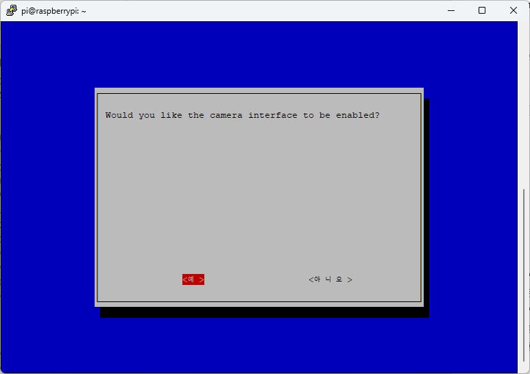 라즈베리파이 설정화면에서 카메라를 enable 한다. 아래 이미지는 Raspberry Pi4 화면으로 안내한다. 원래 이렇게 왔다 갔다 설명한다. ^^ 아래 명령어를 입력하면 매우 아름다운 설정화면이 나온다.