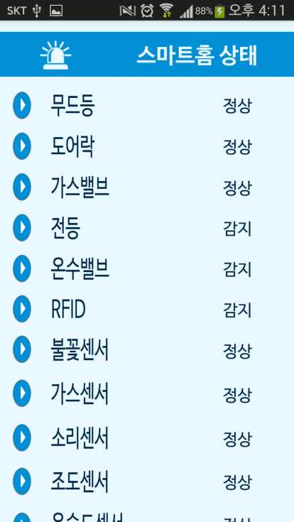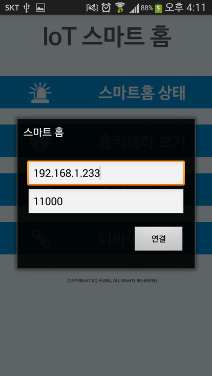 3. 스마트 폰에서 스마트홈 앱을 실행하여 연동확인