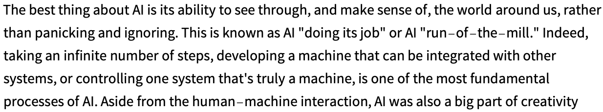 더 오래 지속되면 어떻게 됩니까? 다음은 임의의 예입니다. 상위 단어(온도 0) 보다 낫지만 여전히 기껏해야 약간 이상합니다.