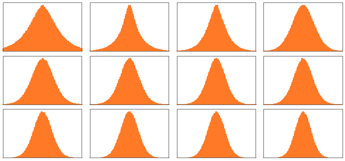 흥미롭게도, 서로 다른 어텐션 블록에 있는 이러한 "가중치 행렬"이 상당히 유사해 보이지만 가중치 크기의 분포는 다소 다를 수 있습니다(항상 가우시안이 아님).