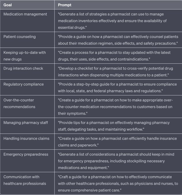 약사로서 여러분은 사람들의 건강과 복지를 돕는 중요한 역할을 합니다. 약물과 의약품에 대한 전문 지식을 활용하여 환자들에게 정확하고 안전한 치료를 제공합니다. 의약품 관리, 환자 상담 및 의료진과의 협력을 통해 환자의 삶을 개선하는 데 기여할 수 있습니다. 의약품의 효과와 부작용을 잘 이해하고, 환자에게 올바른 조언을 제공하여 건강한 사회를 구축합니 다. AI가 약국 운영, 약사 업무의 가장 좋은 친구가 될 수 있습니다. 약사 의 역량을 강화하는 주요 프롬프트는 다음과 같습니다: