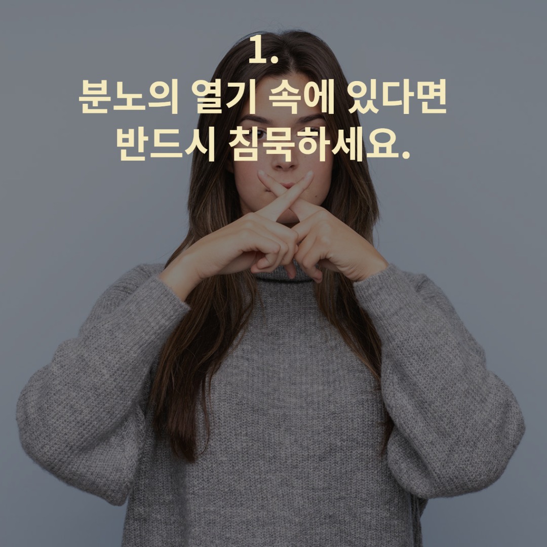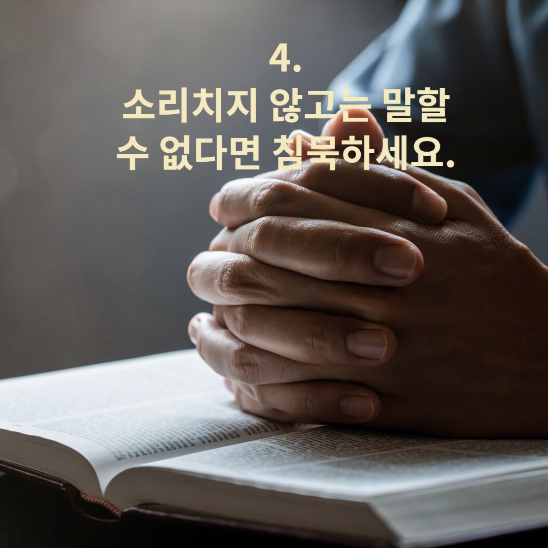 4. 소리치지 않고는 말할 수 없다면 침묵하세요. 침묵을 지킴으로써 상황의 드라마나 부정적인 면에 휘말리기보다는 자신의 정서적 안녕과 치유에 집중할 수 있습니다.