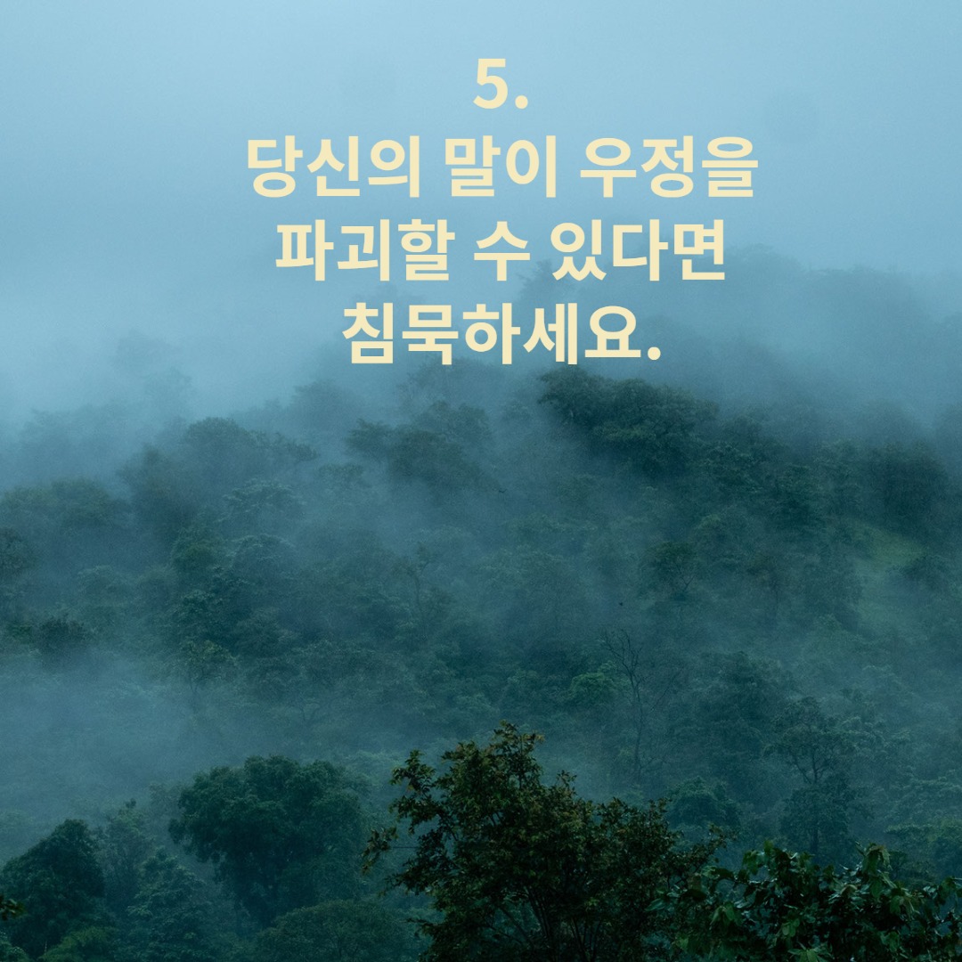 5. 당신의 말이 우정을 파괴할 수 있다면 침묵하세요.