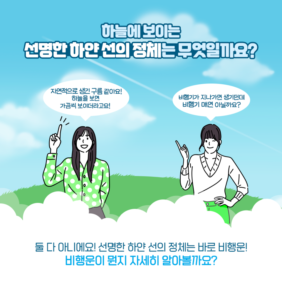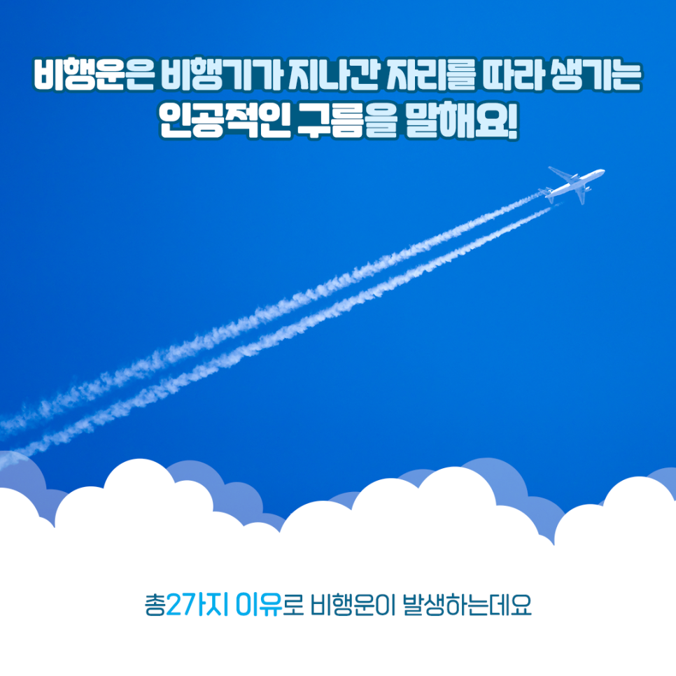 비행운은 비행기가 지나간 자리를 따라 생기는 인공적인 구름을 말해요!