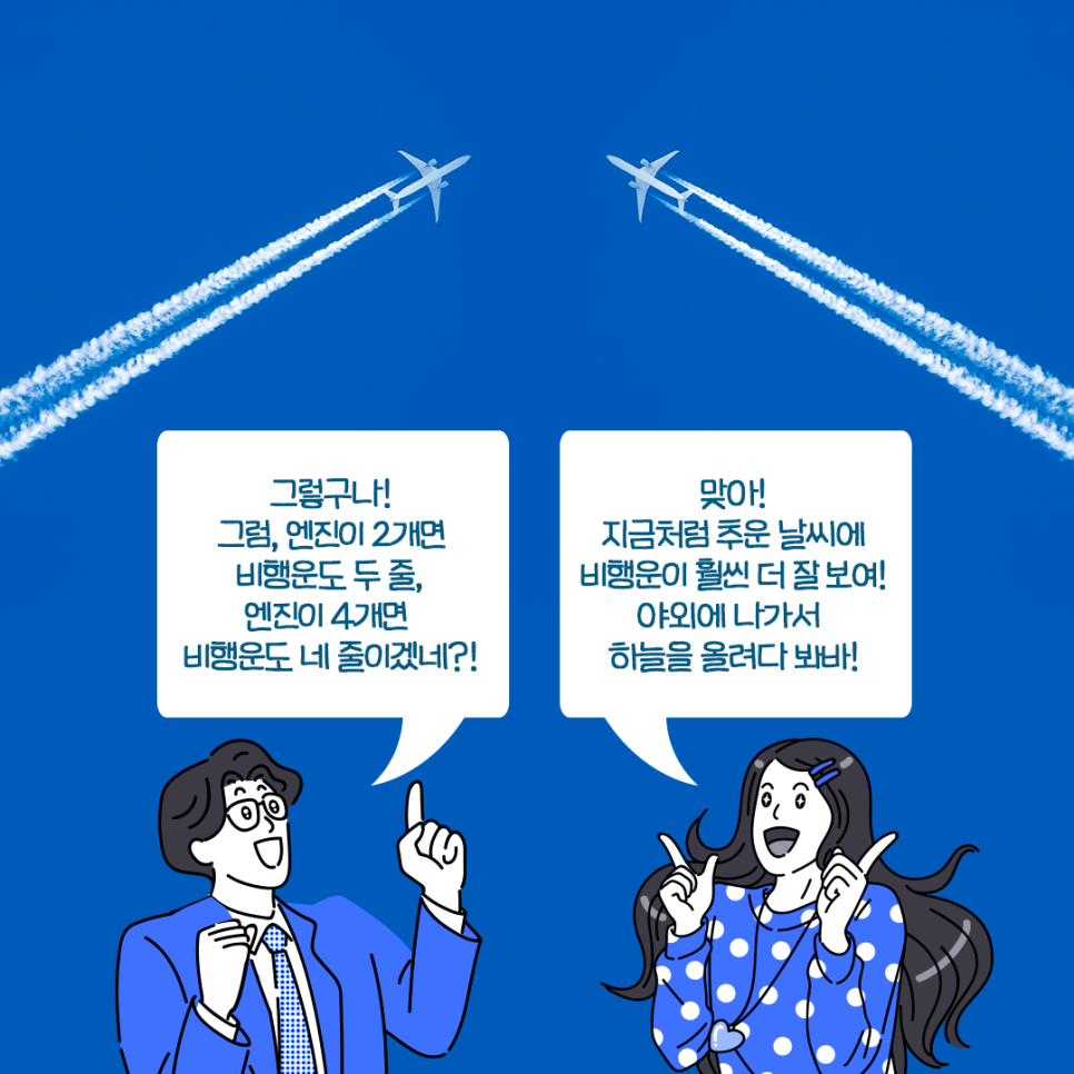 그래서 비행기의 엔진 수에 따라 비행운의 개수도 달라져요.