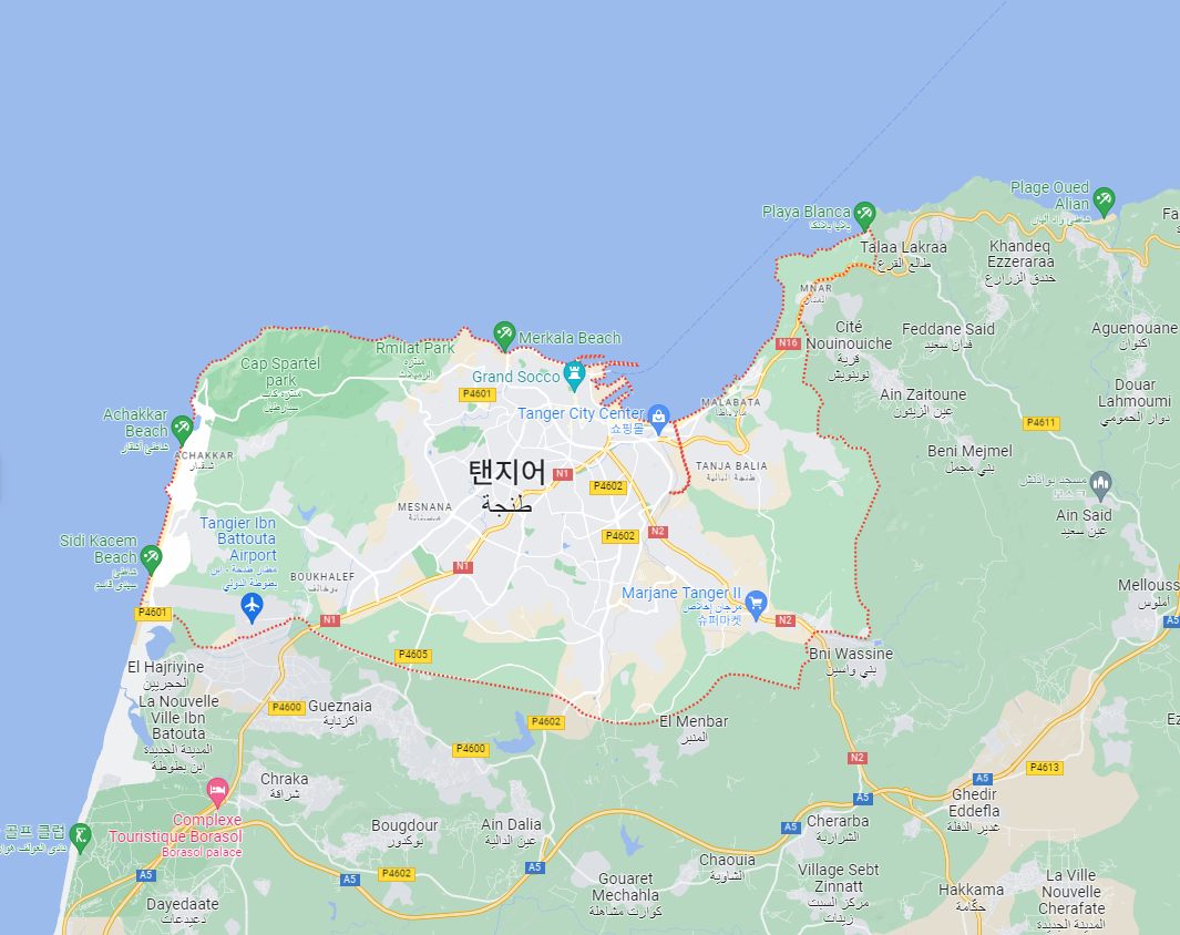 모로코 북단, 지브롤터 해협에 면하며, 스페인에서 27km 떨어져 있다. 페니키아의 항구였으며, 예로부터 아프리카와 유럽을 연결하는 곳으로 중요시되었다.