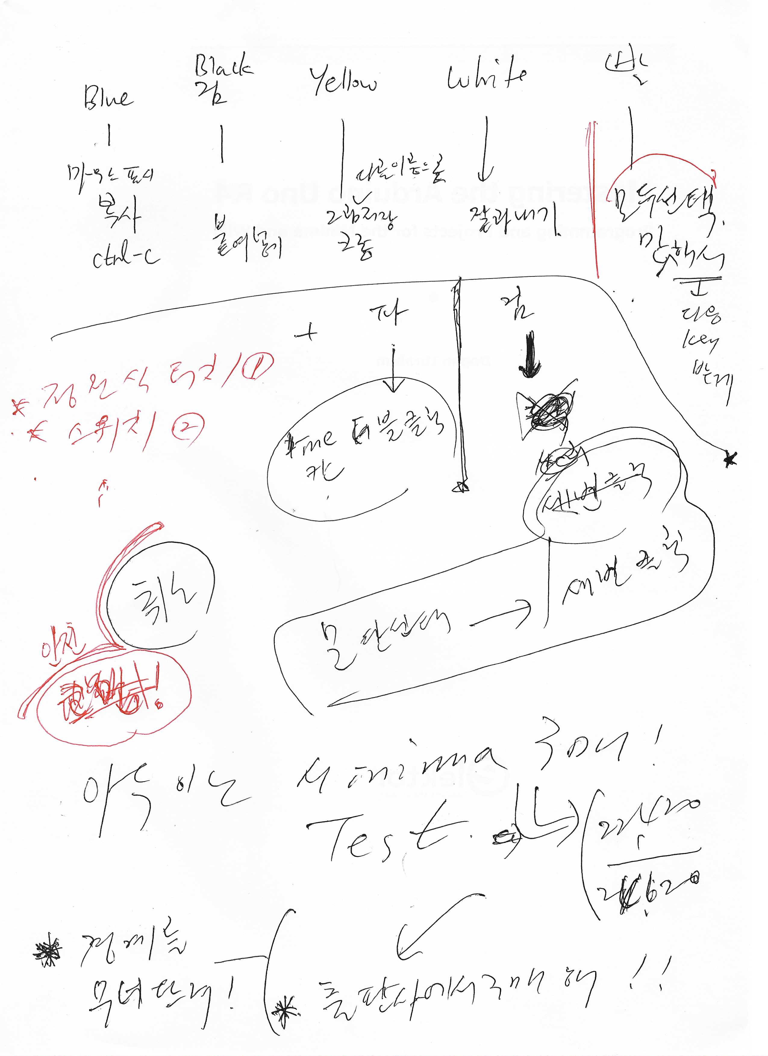 | 파랑 | 검정 | 노랑 | 흰 | 빨강 |