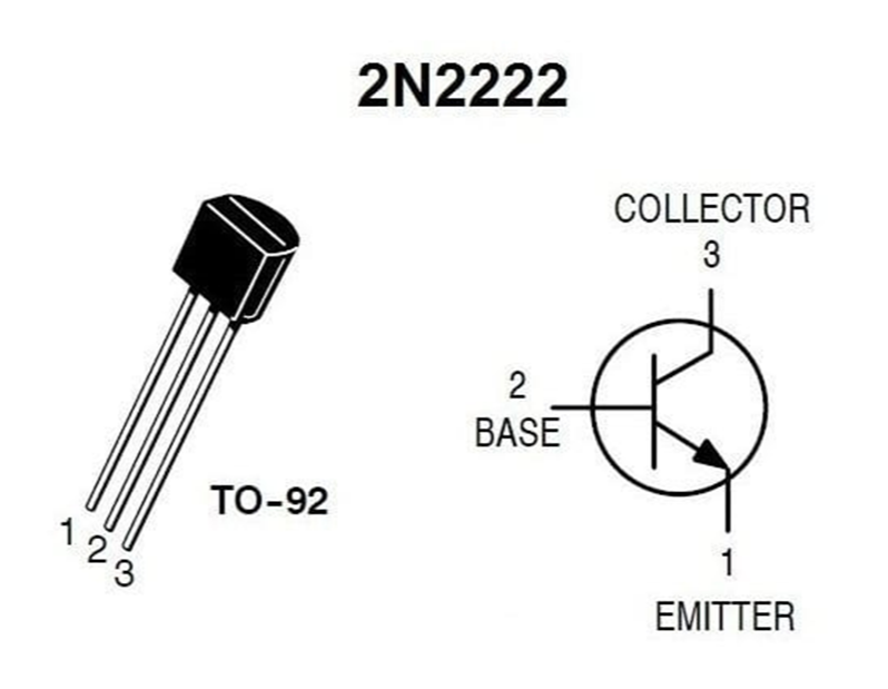2N2222는 NPN 트랜지스터로, 두 개의 N 도핑 층 사이에 단일 P 도핑 층이 내장되어 있습니다.