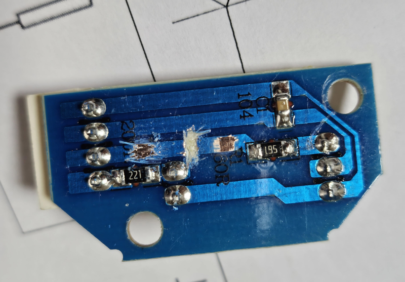 반대로 회로를 수정하면 가까이 가면 켜지고, 반대로 멀리 떨어지면 OFF 상태로 되는 기능이 된다. 아래는 원래 있던 보드회로도를 중국에 요청해 받았다. PCB 외관 모양과 회로도를 참고한다.