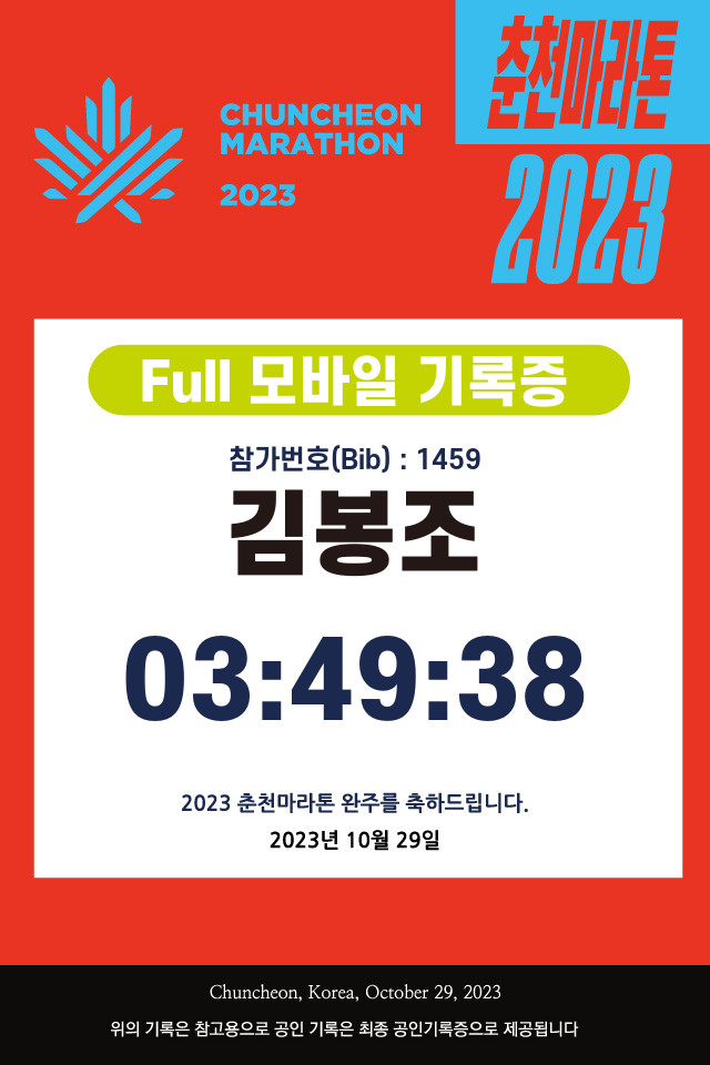 겨우 코로나 이전 기록에 3분이 모자랐다. 안타깝기는 하지만 받아들여야 한다. 뜻밖의 행운에 감사해야 한다. 남자는 늘 감사한 마음을 가지려고 노력하는 사람이다. 더욱 겸손함을 잊지 않는다.