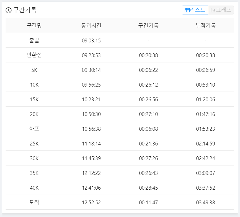 모든 km 페이스를 5분 23초로 정확히 지켰고, 익숙한 주로를 잘 알고 있어서 언덕과 내리막, 거리 안내를 계속 말했다. 32km 지점까지 페이스를 맞추었고 잘 만 따라간다면 이전 최고기록인 3시간 46분을 충분히 넘어설 수 있어 보였다. 아니, 어떤 순간이든 욕심과 조급함은 언제나 문제가 된다.