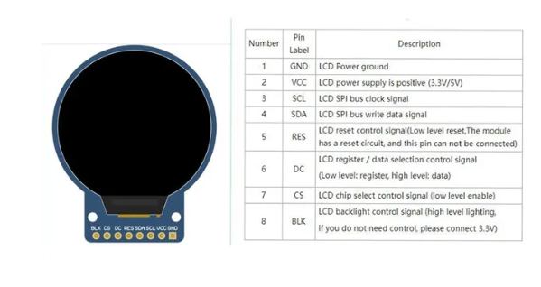 누구든지 LCD를 파이에 연결하는 데 도움을 줄 수 있나요? 알리익스프레스에서 이 원형 스크린을 주문했는데 문서가 없어서 GPIO에서 각 핀이 어디로 가는지 궁금합니다.