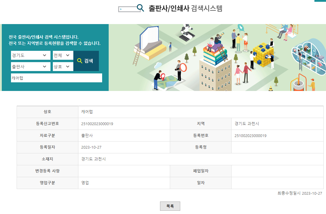 편집과 출판에 관한 공부를 한다. 23년 10월 말에 등록한 사항을 검색 시스템으로 확인한다. 결과가 모든 것을 말해준다. 게을러지지 말고 하나씩 한다.